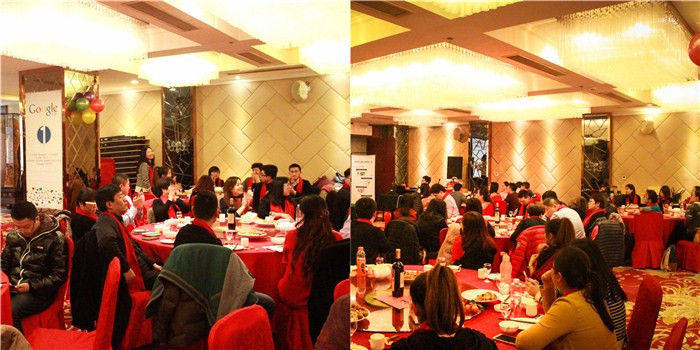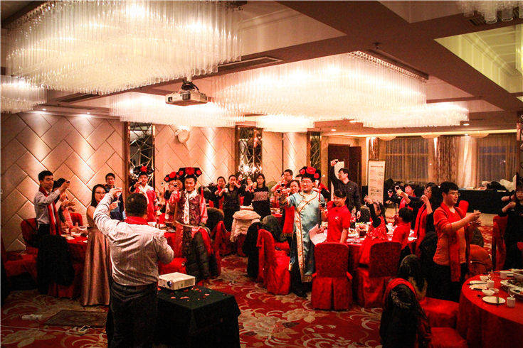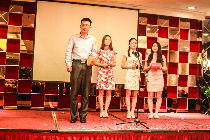 晚会喜庆祥和的氛围里,伴随着激情的音乐、总经理刘雨娇女士总结致词。刘总表示在新的一年里,我们一定再接再厉,再创辉煌和佳绩,并邀请全体同仁举杯,宣布晚宴正式开始。